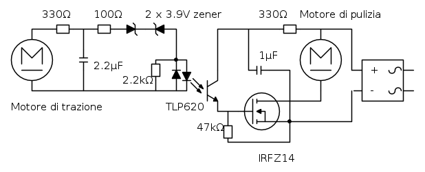 Inoltre c'è anche un ulteriore aspetto che potrebbe rendere interessante questa soluzione: la tensione di alimentazione del motore non è una continua vera, ma un PWM, per cui, specialmente ai bassi valori di V, in realtà l'alimentazione va continuamente a 0, molte volte al secondo (frequenza del PWM 16 kHz, credo) . Non so se l' SCR riconosca questi 0 ad alta frequenza come tali o non consideri la tensione come una continua.