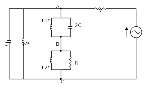 adesso, notando che sono presenti 2 rami LC paralleli, si calcola la frequenza di risonanza di entrambi i rami per cercare (se possibile) di semplificare ancora di più il problema: