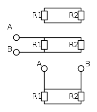 Mah...basterebbe forse studiare la definizione di serie e parallelo, che è un concetto elettrico e non geometrico.