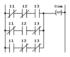 dagli stati di 3 ingressi (I1,I2,I3) e che si voglia attivare Com
