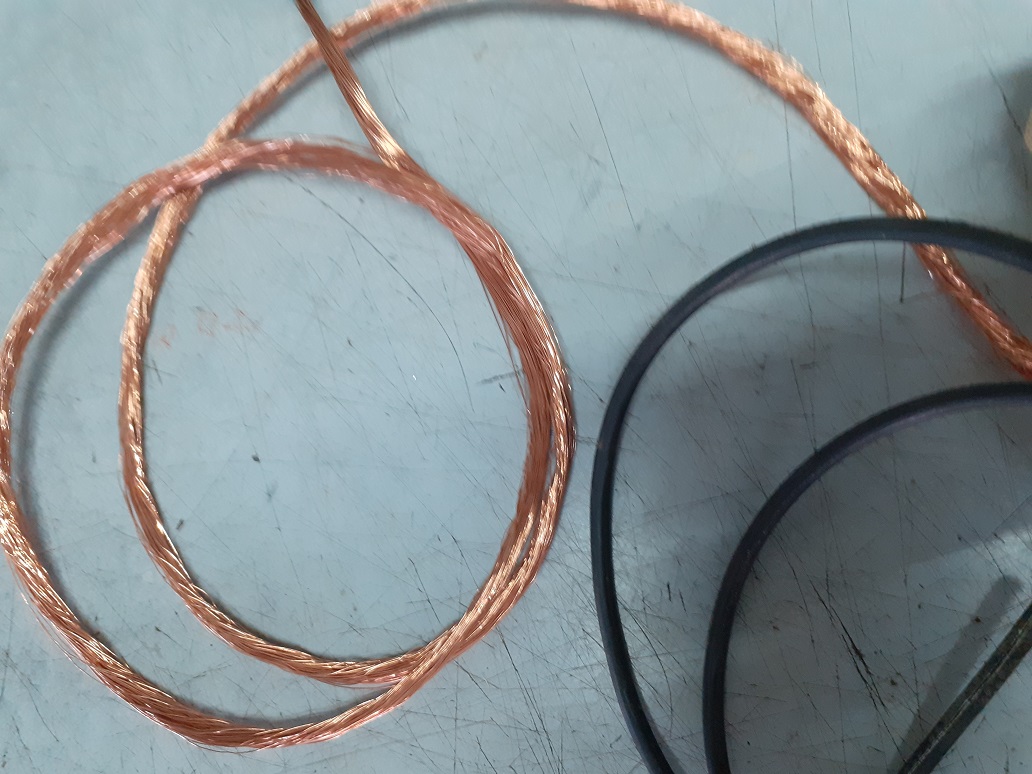 Ho recuperato uno spezzone di 4 m di trecciola di rame del diametro di 4,5 mm sull'isolante, ci ho strusciato un po' di sapone asciutto e questo è il risultato.