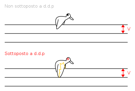 Se invece con una zampa tocca il filo e con un' altra la terra,allora ciò detto prima non vale ma avremo una corrente che attraversa lo stesso uccello data da : 220/R_u ,R_u=5000 Ohm.