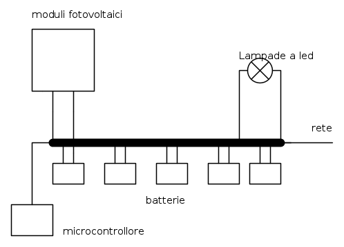 Come si può vedere il tutto ovviamente sotto il controllo di un microcontrollore che metta in carica le batterie scariche e che immetta energia dalla rete se necessario.