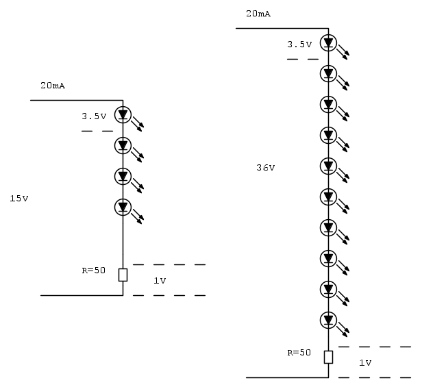 . Nell' altra situazione (c.d.t.= 3,4V) avremo quindi una corrente di 14 mA.