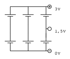 quindi se prima veniva alimentato da due pile da 1.5V alla volta, ora verrebbe alimentato da 6 pile con 1.5V.