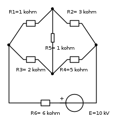 Salve a tutti, ho difficoltà nel risolvere il seguente circuito..scusate se è disegnato un po' male, ma è il primo circuito che disegno con fidocad. Devo trovare la corrente I che esce da R5 (non sono riuscito a disegnare la freccia) utilizzando delle trasformazioni equivalenti..io ho pensato che, dato che devo trovare la corrente che esce da R5, non è conveniente operare trasformazioni su quel ramo... e ho provato a trasformare a triangolo le resistenze R1 , R3 ed R6... ma a questo punto non so come procedere... qualcuno potrebbe darmi un indizio su che trasformazioni è più conveniente fare per semplificare più possibile il circuito?