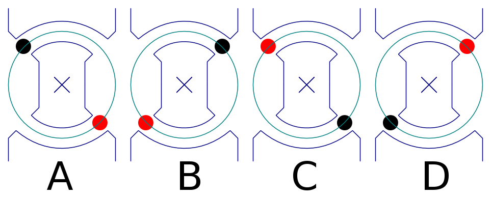 costante da cui consegue una coppia resistente equivalente. Nei tratti B-C, D-A, la spira non vede nessuna variazione di flusso e la coppia resistente è nulla.
