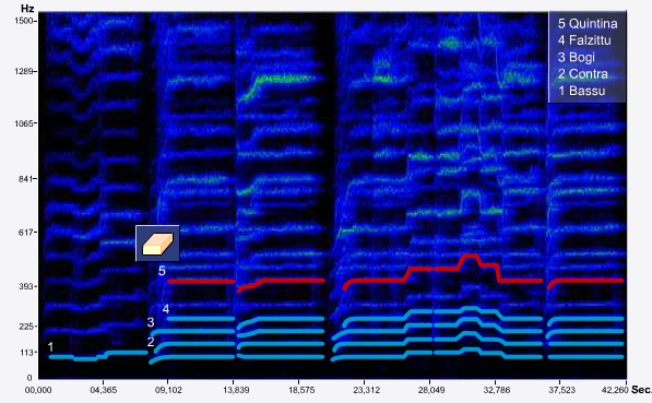Invece c'è un altro fenomeno interessantissimo studiato dagli etnomusicologi ed è quello della "quintina" sarda. Nella celebrazione pasquale, a Castelsardo, c'è un canto tradizionale in cui quattro cantanti, maschi, si mettono in circolo ed iniziano a cantare. Se le voci sono scelte correttamente, i timbri si fondono e le varie armoniche si mischiano... per formare una quinta voce, acuta, dal timbro etereo che può essere distinta con un po' di abitudine. Il significato è quello della Madonna che "scende" evocata dai cantori...