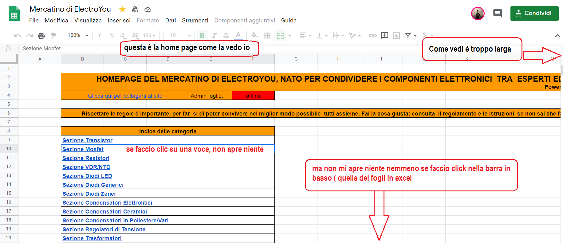 Se clicco ad esempio dalla HomePage "Sezione Mosfet", manda alla tabella Mosfet