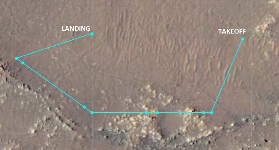 La strategia perlustrativa, acclarate le capacità dell'elicotterino, è divenuta appannaggio degli scienziati che stabiliscono gli obiettivi di Perseverance; in tal caso avevano ritenuto l'area meritoria d'una possibile verifica diretta da parte del rover e quindi oggetto di ricognizione aerea.