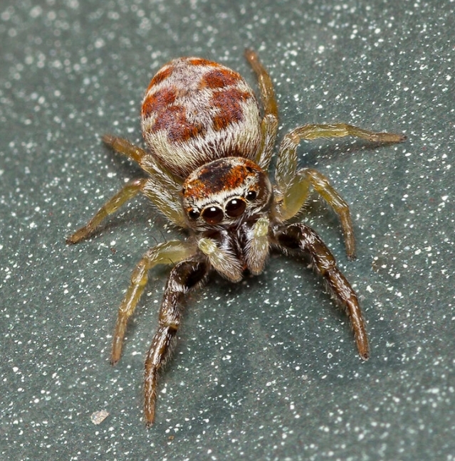 Notare che la livrea del ragno si confondeva con la superfice dalla panchina, la vista a 360° della mosca, stavolta non l'avrebbe aiutata!