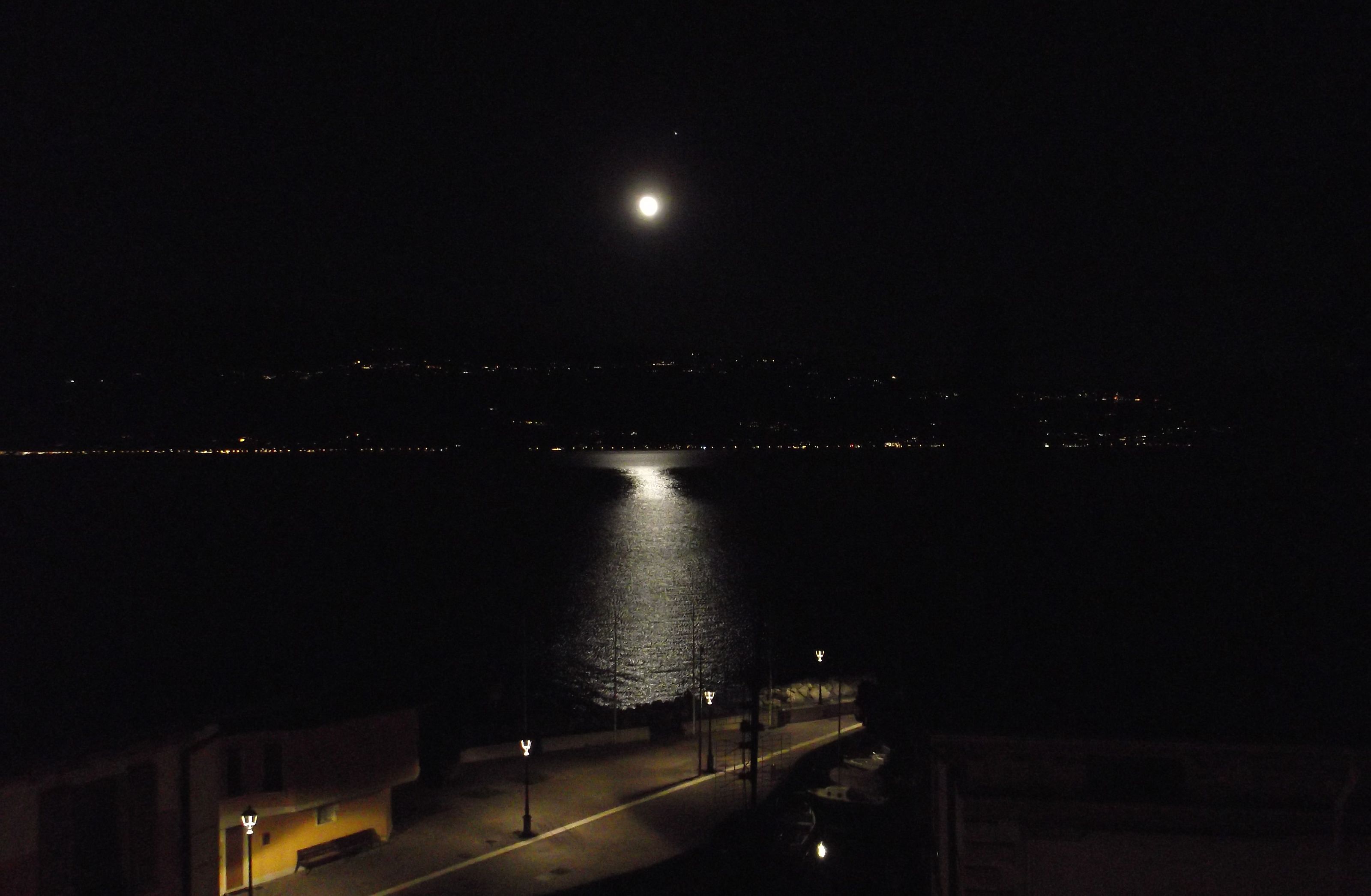 C'e' una bella luna stasera, ed ho voluto provare a vedere se riuscivo a fare una foto decente dalla strada sopra casa mia, purtroppo ho scoperto che la compattina che ho disponibile al momento non gradisce fare foto in notturna (e la capisco, e' una povera AX350 del 2011, per giunta tirata insieme con i pezzi di due scartate, ha anche ragione ad offendersi se cerco di fargli fare un lavoro troppo difficile