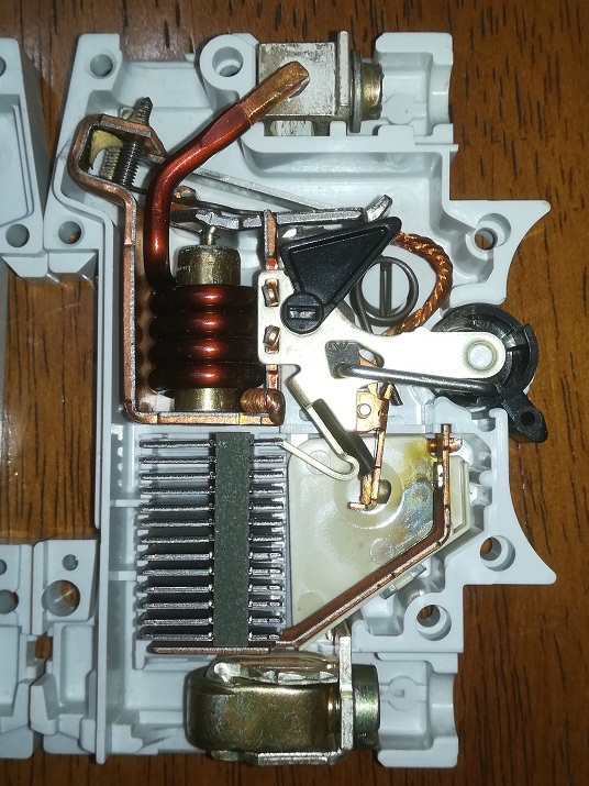 e siccome siamo un un forum Elettrotecnico, ecco uno scattino tecnico.. la curiosità di disassemblare un magnetotermico bipolare guasto, aprendo poi un polo .."per vedere" .. non ha prezzo ..