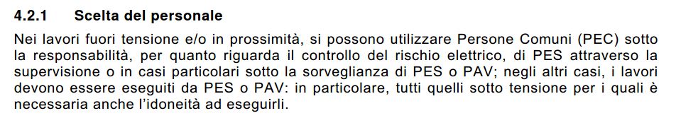 Goofy ha scritto:Per la 11-27 la persona comune può svolgere lavori in prossimità e fuori tensione sotto supervisione / controllo di PEC o PAV