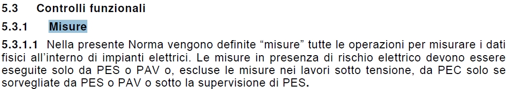 (tra l'altro l'immagine riportata ad esempio estrapolata dalla CEI11-27 indica una misura eseguibile solo da PES-PAV);iosolo35 ha scritto:..la persona PEC può eseguire misure elettriche se le parti attive hanno un grado di protezione almeno XXb o 2x..