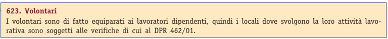 Se vogliamo fare l'omologazione ai sensi del DPR 462/01 e le successive verifiche perché consideriamo questi volontari dei lavoratori, allora gli stessi, per coerenza, dovranno essere formati, informati e addestrati.