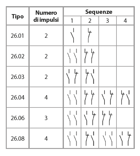 In definitiva, ti consiglio di utilizzare il relè che ti ha indicato Foto Utentedjnz, ossia il modello con codice Finder 26.04.8.230. Eventualmente, se preferisci altre sequenze, puoi sostituire il tipo "26.04" del codice con altro tipo di sequenza, scelta dalla seguente tabella (che dovrebbe essere di facile interpretazione anche per i "non addetti"):
