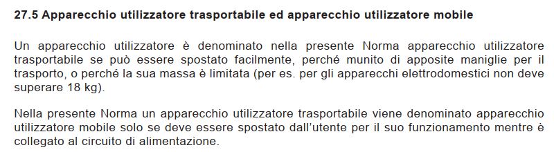 Foto UtenteGioArca67 forse ho anche esagerato scrivendo che è trasportabile, dalla definizione CEI 64-8/27.5 sembra classificabile come fisso