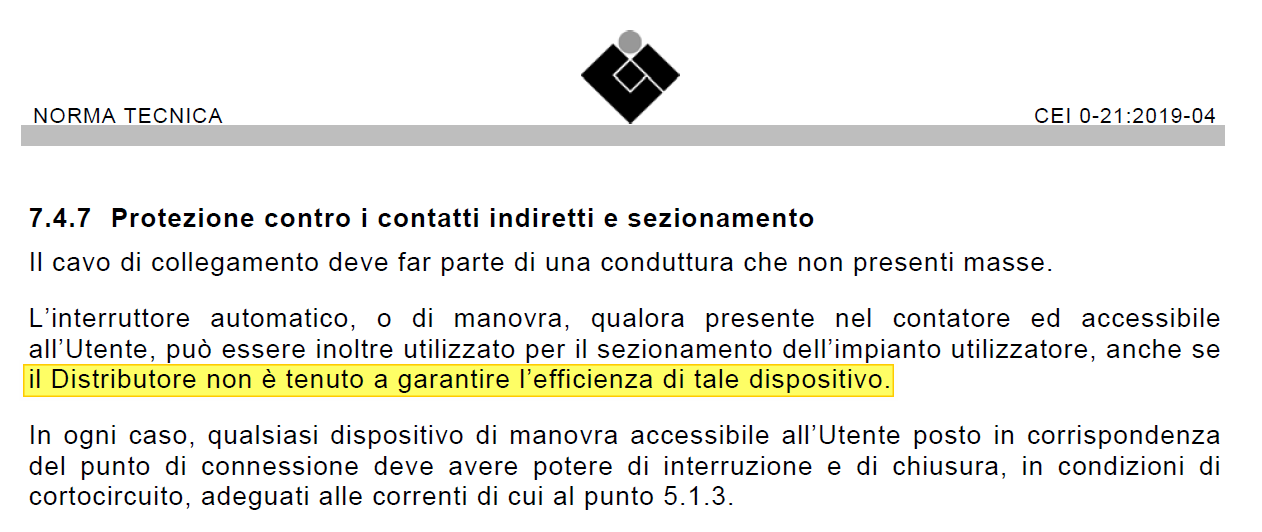 Previa comunicazione... (Nota 25 CEI 0-21 art 7.4.6.1)
