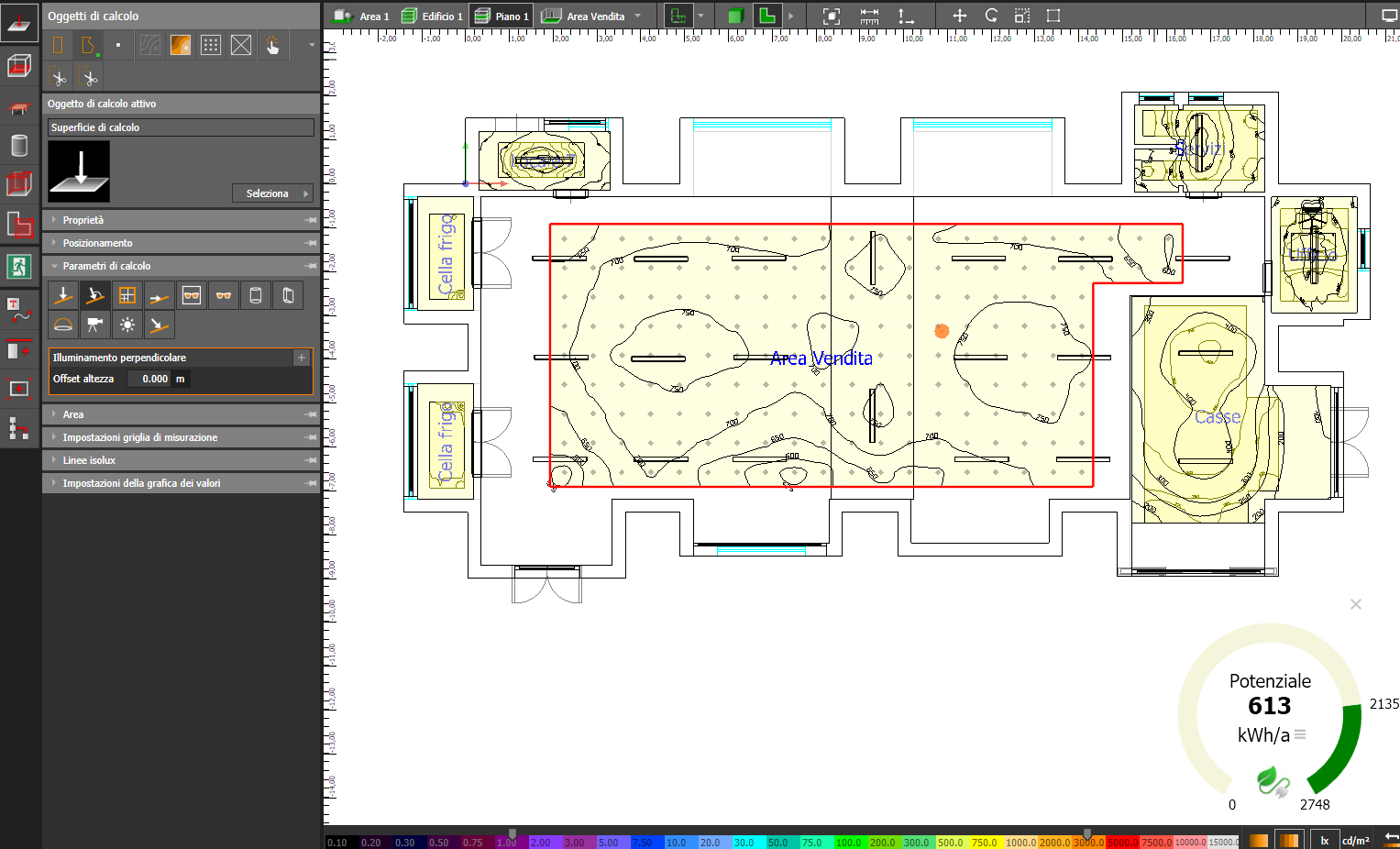 Non me ne volere, ma il programma è abbastanza complesso, hai una idea di come impostarlo? A vedere dalle curve mi pare che tu abbia delle plafo spente?, il valore molto basso è legato all'illuminamento negli angoli: ci devono essere dei mobili li?