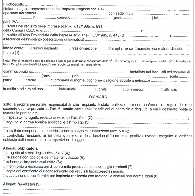 sisu70 ha scritto:Per curiosità, il modulo "ufficiale" (allegato al decreto in vigore oggi e pubblicato sulla gazzetta ufficiale) per la dichiarazione di conformità è ancora il seguente ?