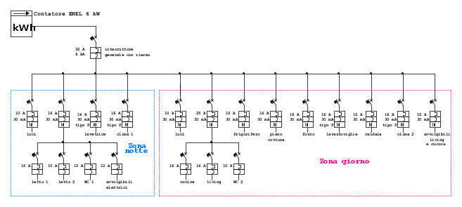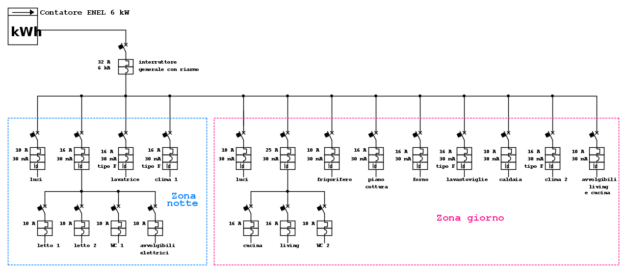 Ho inserito anche la corrente nominale di ciascun interruttore, ma ovviamente sono solo valori indicativi.