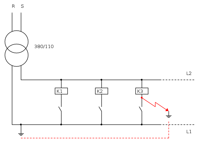 Mettendo invece correttamente L2 a terra, già un primo guasto di L1 a massa provoca l' intervento del fusibile (o delle altre protezioni previste) ed inibisce l' intempestivo azionamento del teleruttore (relè o altro...)