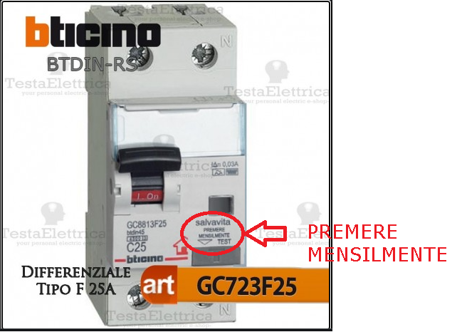La Gewiss ha in catalogo un modello ancora più sofisticato, che dispone di due contatti ausiliari che prima del test cortocircuitano il differenziale, e dopo la prova si riaprono nuovamente, in modo che, in definitiva, il test viene eseguito sempre in automatico e senza mai togliere tensione all'impianto di casa. L'ho provato, è piuttosto rumoroso nel funzionamento (con tutti quei contatti che aprono e chiudono), ma funziona bene, e l'intera operazione viene eseguita in pochi secondi.