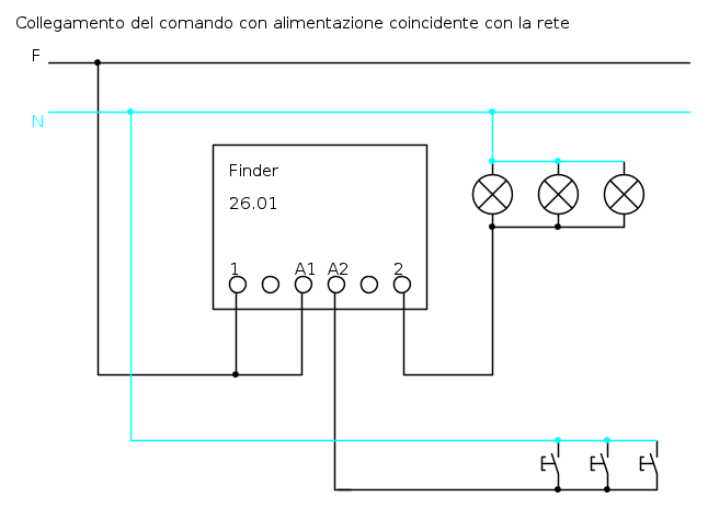 Devo però dire che proprio per questo, preferisco utilizzare la serie 26 (circuiti di comando e potenza separati) e fare interrompere al pulsante la fase (della bobina del relè), così come si fa di norma per tutti i dispositivi di comando unipolare.