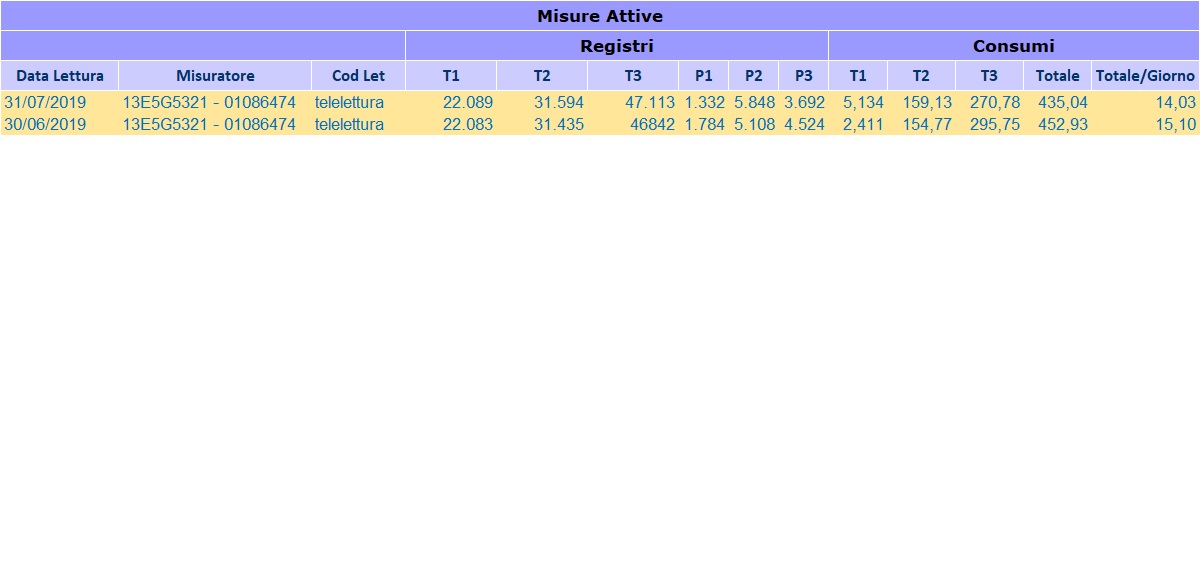 avrei bisogno di ulteriori informazioni. Ho applicato il metodo della potenza prelevabile. Al fine di effettuare un confronto con le misurazioni rilevate dopo la verifica, ho chiesto all'ente gestore i dati registrati per l'utenza di interesse.