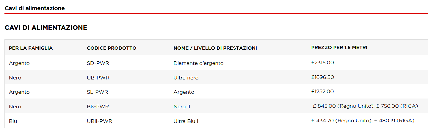 Un cavo di alimentazione da 1,5 metri costa 2.315 sterline, al cambio attuale poco più di 2.600 euro.