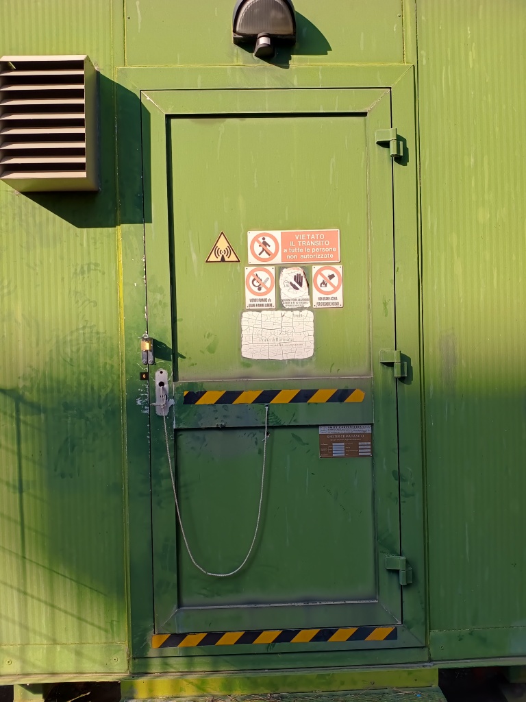 Qualcuno avrà rubato/asportato la maniglia, e i poveri manutentori hanno riparato come potevano. Purtroppo nel magazzino aziendale non ci sono maniglie di ricambio per shelter.