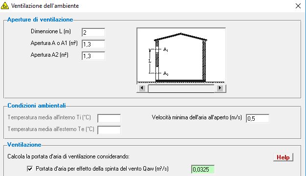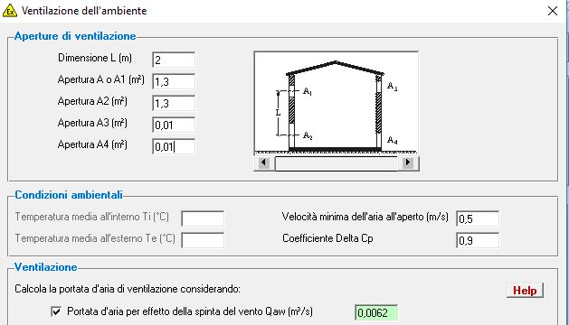 Da una valutazione dell'areazione naturale per la spinta del vento, ipotizzando un locale di dimensione L10xP2,5xH3m, ho calcolato le portate d'aria nelle 3 ipotesi: