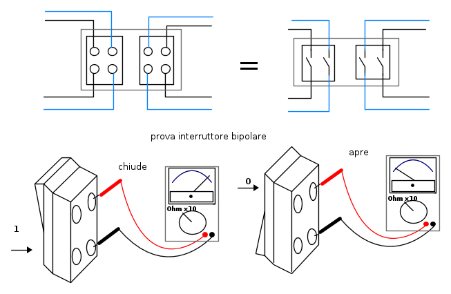 Premesso che è buona norma segnare sempre i conduttori con le relative posizioni prima di scollegarli,ora prima di collegare a caso i conduttori sugli interruttori bipolari bisogna dapprima capire le connessioni dei bipolari, poi capire i conduttori come lavorano e rilevarlo in assenza di tensione non è semplice.