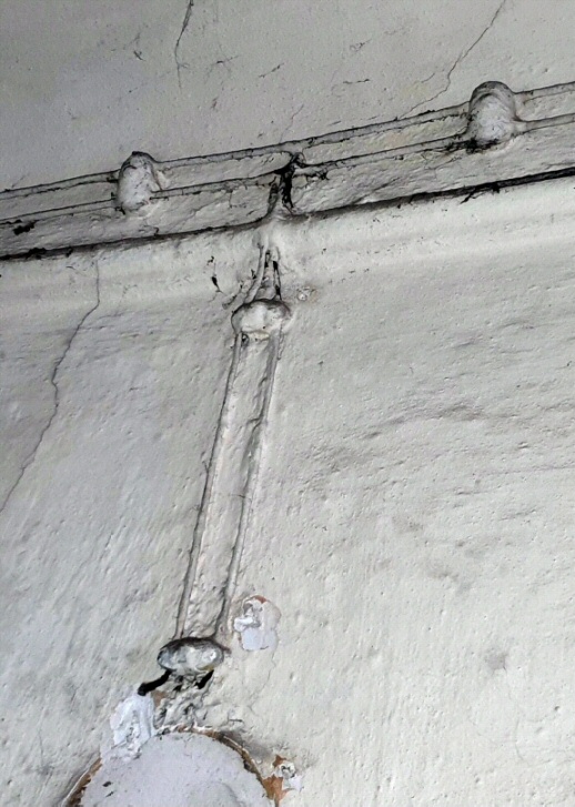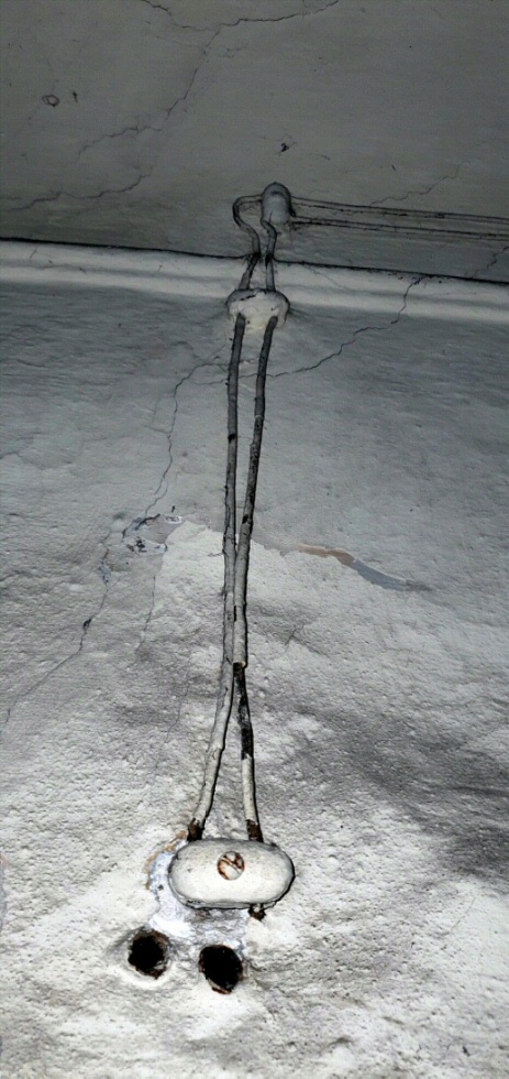 Distribuzione linea dorsale a parete con calata verso la cassetta di derivazione in edificio storico, mi hanno detto che è stata una delle prime elettrificazioni in un edificio del mio paese.