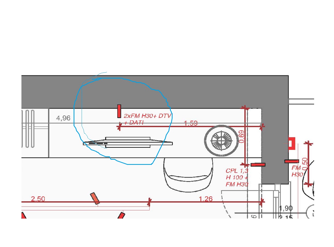 guardando il progetto illuminotecnico mi trovo indicazioni del tipo da disegno allegato, mi chiedo, l'indicazione del progettista prevede 2XFM H30+DTV+DATI.