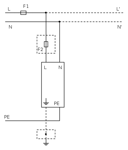 Io ho installato l'SPD della Dehn (giusto per non fare pubblicità) con questa configurazione, la protezione a monte fatta con un fusibile da 50 A (anche se il costruttore dichiarava un 125 A) e ho collegato il morsetto con il simbolo di terra al collettore mentre quello marcato PE l'ho lasciato libero.