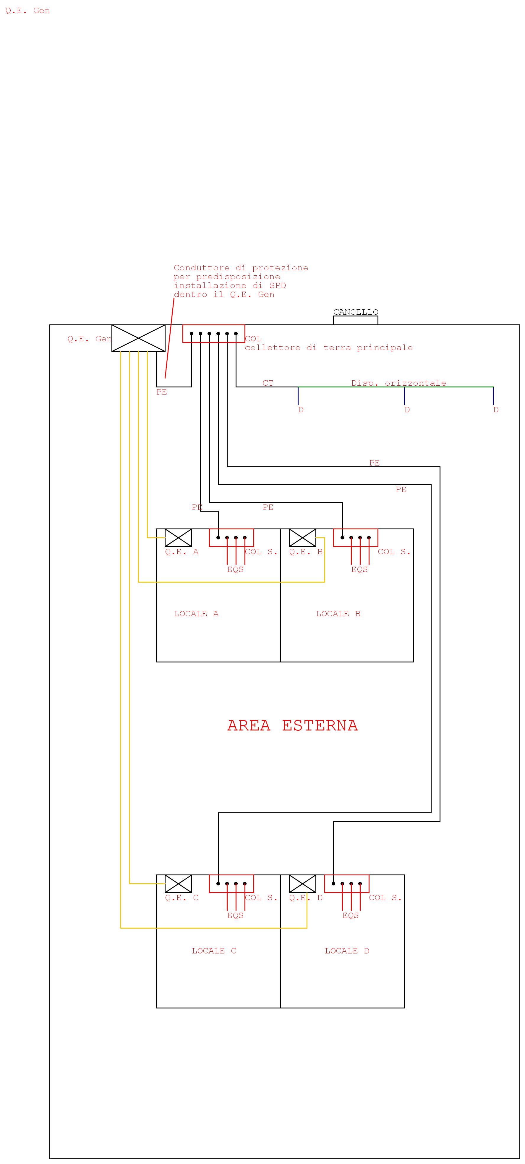 In qualsiasi caso considerate che lo schema è fatto in maniera approssimativa, la linea di alimentazione del Q.E. A, proveniente dal Q.E. Gen, è lunga circa 60 m.