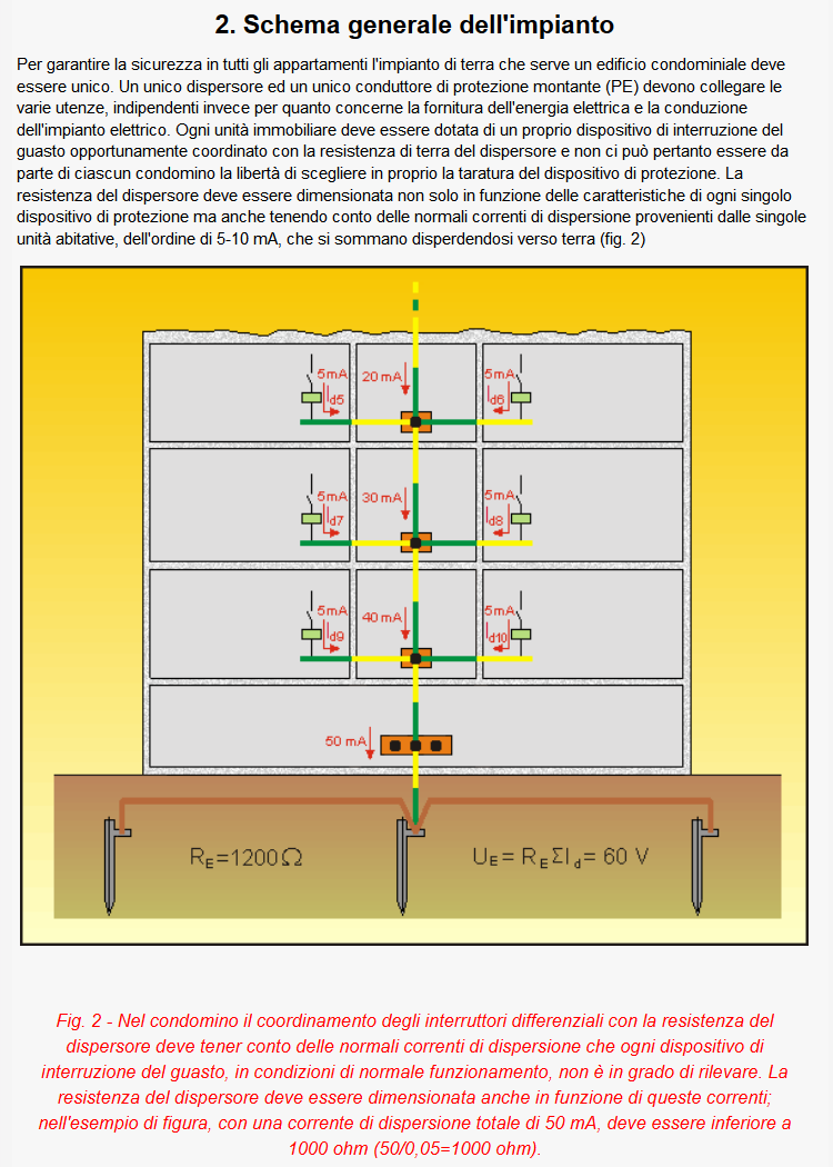 Ricordo di aver sollevato il problema del valore da rispettare per la terra condominiale (vedi questa discussione nel 2015), basandomi sia sul fatto che si possono verificare interventi contemporanei dei differenziali a causa di un guasto (peraltro statisticamente piuttosto improbabili), sia per il fatto che in ogni impianto esistono pur sempre delle dispersioni più o meno fisse per cause varie.