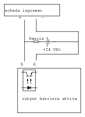Alle caratteristiche di uscita barriera e ingresso scheda del post 10, aggiungo qui le caratteristiche di ingresso barriera: