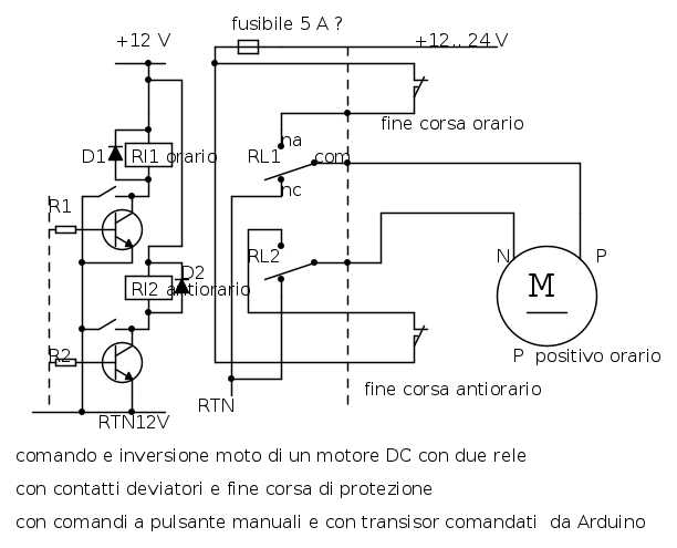 Come aiuto, invio uno schema di un comando di motore in corrente continua, schema che ho disponibile.