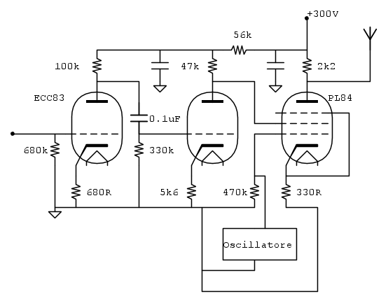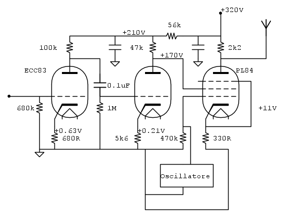 Mi sento comunque perfettamente a mio agio a lavorare con le valvole (molto più che con mosfet e opamp), infatti ho già realizzato diversi amplificatori con finali di potnza (807 e simili). Il mio problema è che son proprio a digiuno di teoria AM.