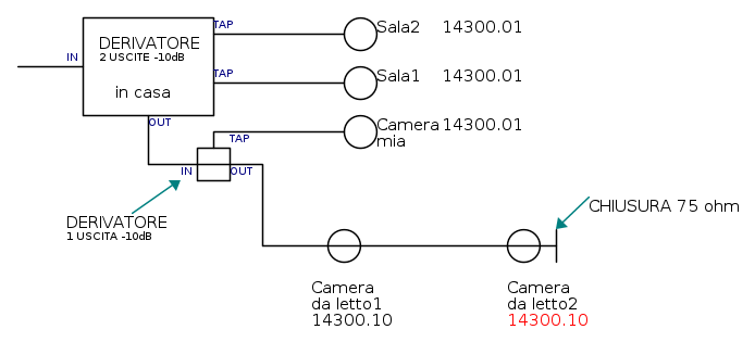 Quindi il derivatore 1 tap non saprei dove o come metterlo. L'unica cosa che posso fare è mettere quello 2 tap da sostituire al partitore e sostituire la presa di camera_da_letto2.