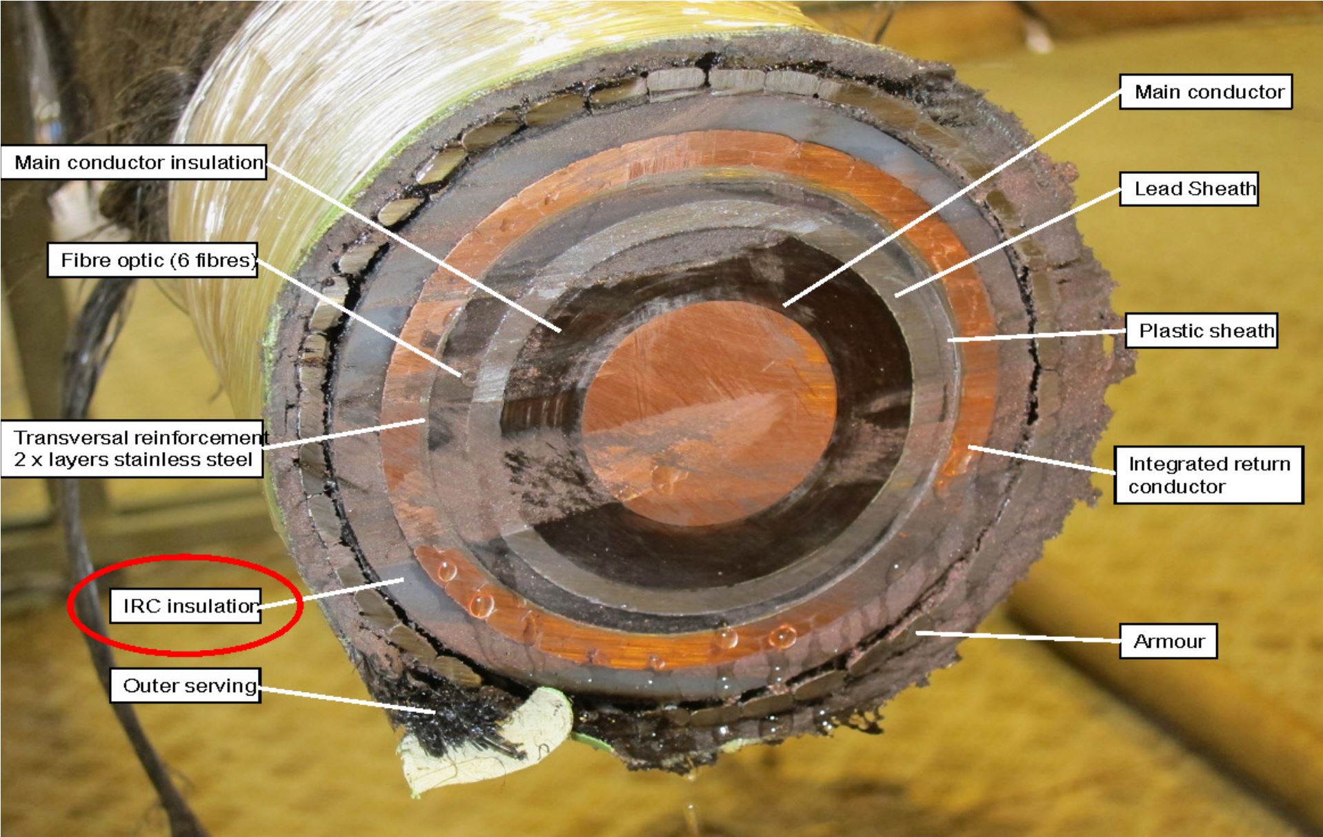 Anche in caso di collegamenti sottomarini HVDC, ci sono diversi esempi di cavi che integrano conduttori di potenza con fibre ottiche. Nella foto seguente, un esempio con il cavo Moyle, un collegamento HVDC da 250 kV tra Scozia ed Irlanda.