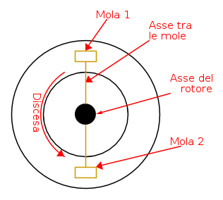 L'asse del rotore è perpendicolare al disegno (cioè è disposto verticalmente nel mondo reale di Escher).