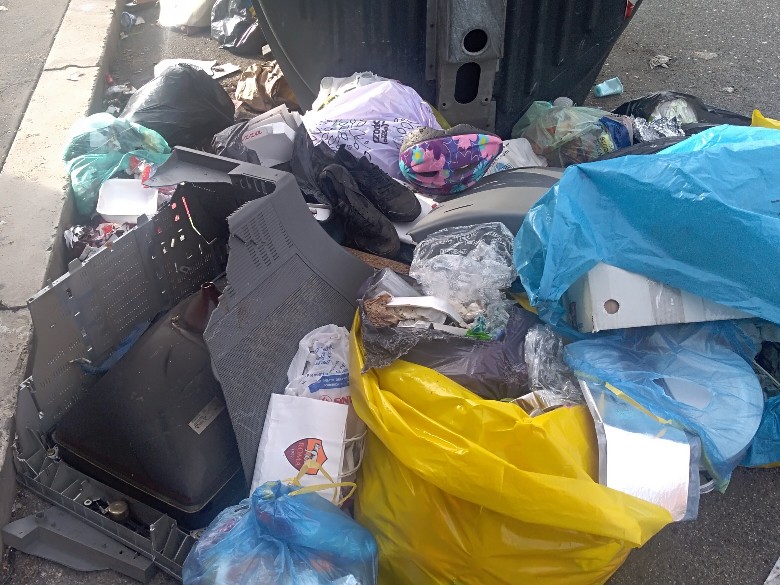 Riversano quasi totalmente tutta la spazzatura sui marciapiedi e sul bordo strada.