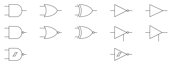 Che sia il caso di mettere il simbolo di enable vicino all'output enable? Analogamente per le uscite open source e open drain. Per non complicare troppo la libreria, insieme ai vari simboli si potrebbe mettere da solo ache il simbolo di open source e open drain e poi se servono (di rado) uno lo aggiunge.