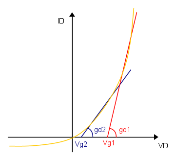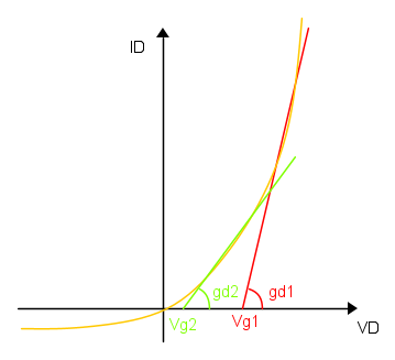 L'approssimazione lineare a sinistra e` verde, con tutte le sue scritte in verde.