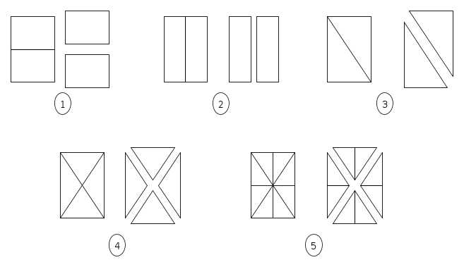 Ritengo che qui sia stato necessario uno sforzo di astrazione non indifferente per capire che hanno la stessa superficie: a qualcuno di loro dotato grande fantasia sarà venuto in mente di dividere ulteriormente i triangoli come in fig.5 per accorgersi che i triangoli più piccoli che si ottengono sono tutti uguali...al massimo alcuni sono rovesciati.