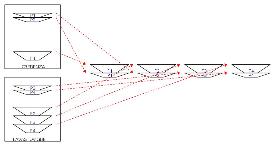 FedericoSibona ha scritto:carlomariamanenti ha scritto: Devi apparecchiare la tavola per quattro persone, disponi di due piatti piani nella credenza e di due piatti piani nella lavastoviglie; vi sono ancora una fondina nella credenza e tre nella lavastoviglie.